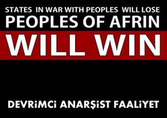 Os Estados em guerra contra os povos perderão Afrin pertence às pessoas de Afrin. As pessoas que vivem em Afrin nasceram nessas terras e morrerão nessas terras. Viver ali não está relacionado com nenhum plano ou programa. Elas não estão em Afrin fazendo parte de uma estratégia. Afrin, para eles é a água, o pão, … Continue lendo [Turquia] Comunicado da organização anarquista DAF em solidariedade com Afrin