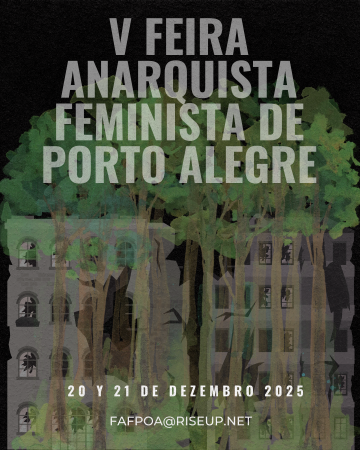 Chamamos à essa Feira Anarquista Feminista a denunciar e ativar novas estratégias de RETOMADA e RE-OCUPAÇÃO DA CIDADE, para o combate ao sistema que quer nos destruir. Chamamos à articulação de ideias, propostas, movimentos, coletividades, artes e manifestações a construir y desconstruir esse território. Nos unirmos entre mulheres e dissidências a partir das nossas lutas e ativar nossas vidas. ESSE TERRITÓRIO TAMBÉM É NOSSO!