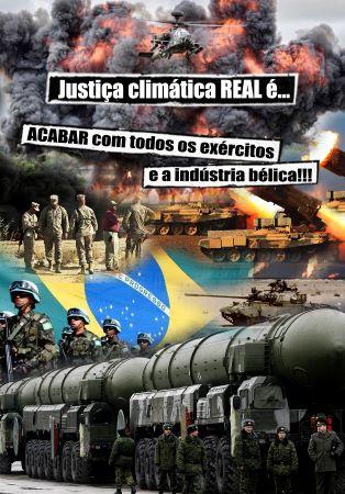 Portanto, combater as mudanças climáticas é, entre outras ações reais urgentes, DESMILITARIZAR, ACABAR com todos os exércitos e a indústria bélica!!!